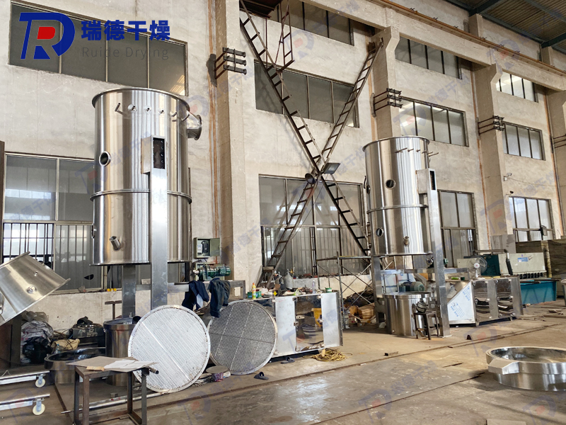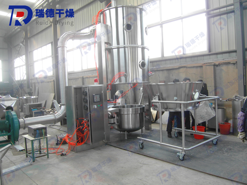 將制粒用的粉末物料放入流化床內,物料粉末粒子在原料容器中呈環形流化狀態,受到經過凈化后的加熱空氣預熱和混合,將粘合劑溶液霧化噴入,使若干粒子聚集成含有粘合劑的團粒,由于熱空氣對物料的不斷干燥,使團粒中水分蒸發,粘合劑凝固,此過程不斷重復進行,形成理想的、均勻的多微孔球狀顆粒。